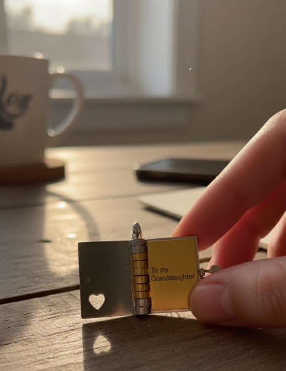 The locket contains 6 mini pages with a pre-written message from grandmother to granddaughter: